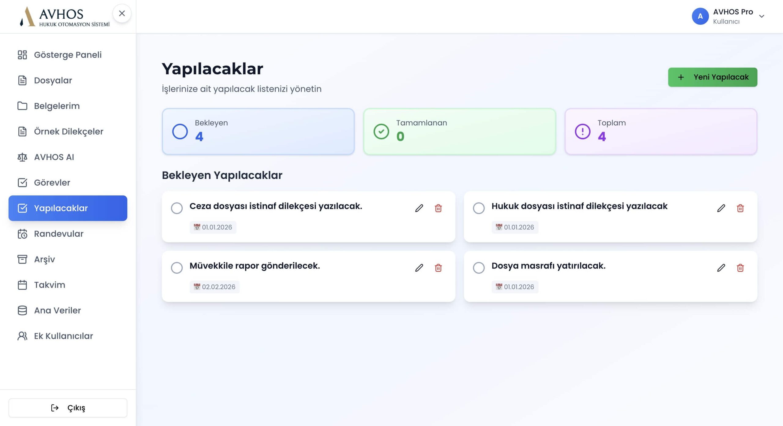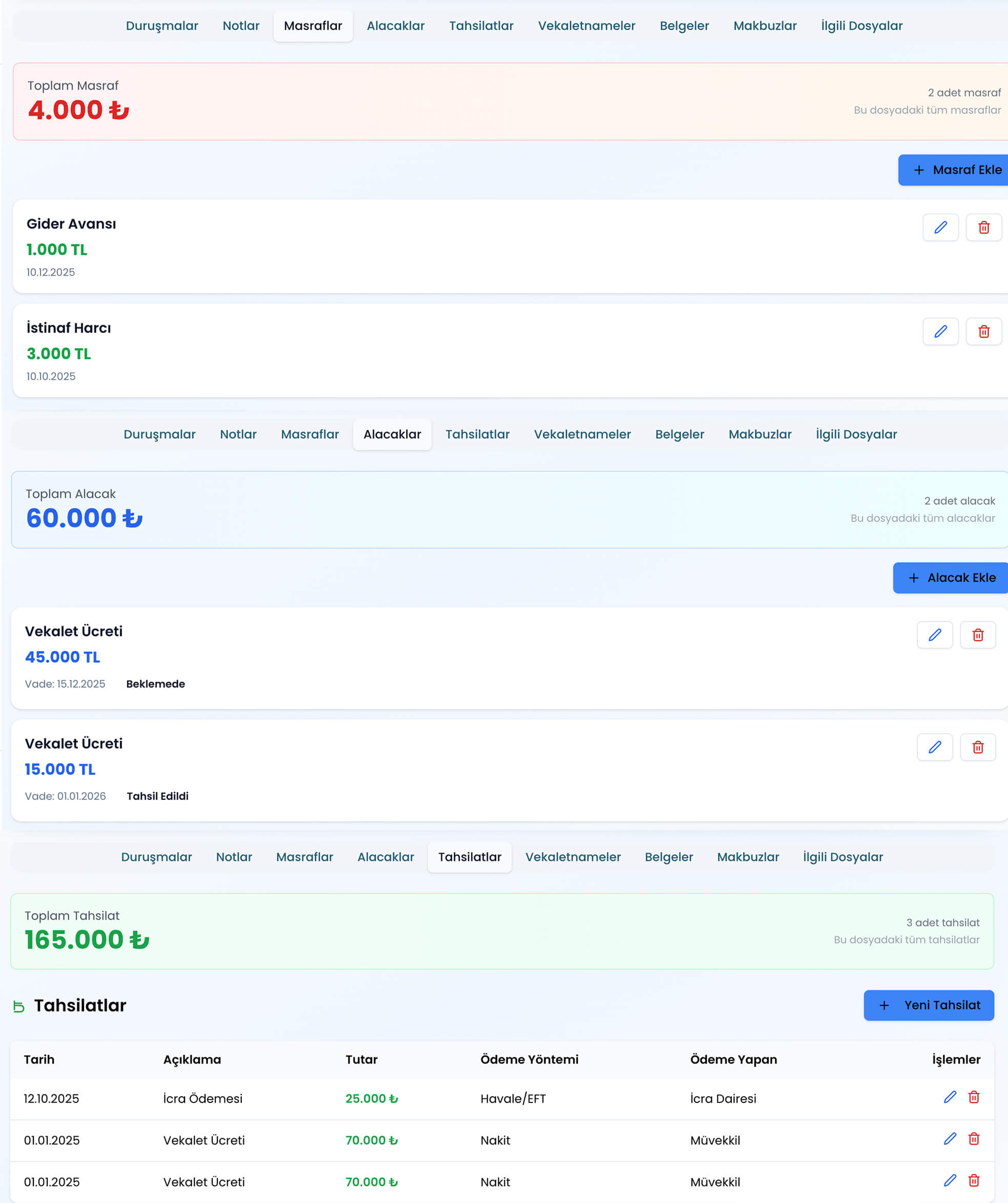 You can clearly track case-based expenses, pending payments, and collection statuses through AVHOS. Viewing the financial status of each case on a single screen strengthens your office’s financial discipline. All expenses and completed collections for each case are recorded in an organized manner.